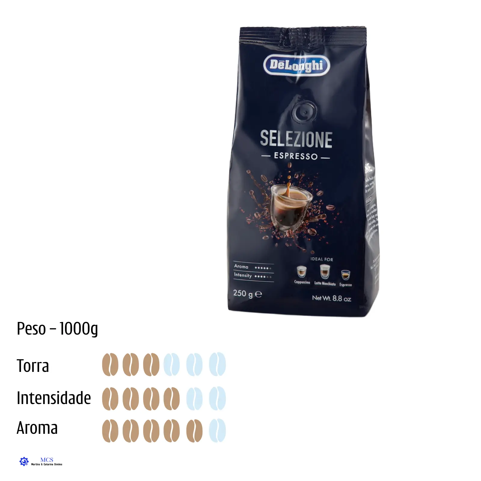 Café em Grão De’Longhi Selezione – 70% Arabica / 30% Robusta – Torra Média Intensa (1 kg e 250g)