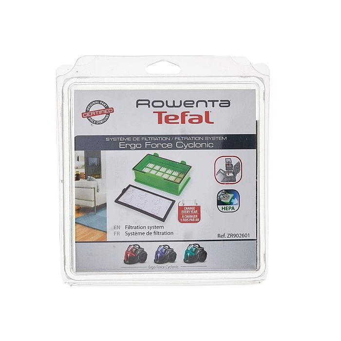 O Conjunto filtro mais filtro Hepa Rowenta ZR902601, constituído por filtro pano e filtro Hepa. Filtro de elevada performance 13 + um filtro lavável para capturar melhor  alérgenos e bactérias.