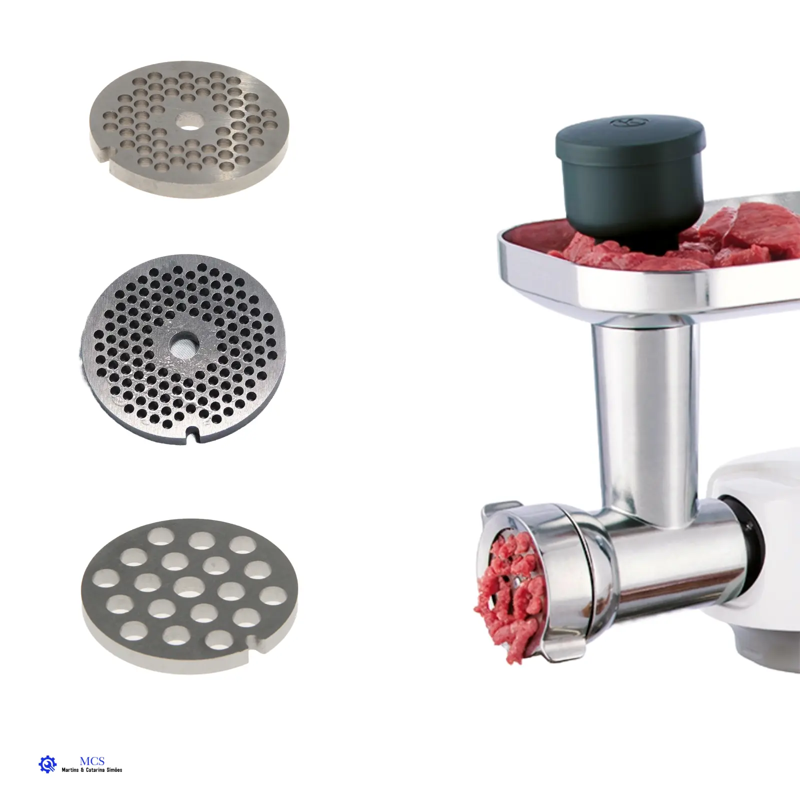 Versatilidade e qualidade na sua cozinha! Ideal para preparar 🥩 salsichas, almôndegas ou pratos vegetarianos 🌱 como falafel e bolinhos. Com corpo em metal resistente 💪, oferece cortes precisos com três discos: fino (3 mm), médio (4,5 mm) e grosso (8 mm). Compatível com robots Kenwood Chef e Chef XL, adapta-se até a modelos mais antigos com o adaptador KAT001ME. 🌟 Crie receitas incríveis com controlo total e ingredientes frescos! 🍴