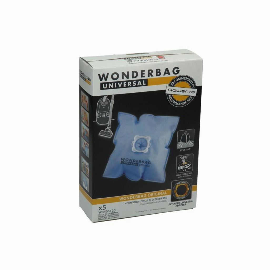 Wonderbag Original são bastante resistentes com 3 niveis de filtragem. Esta característica permite até 96% de retenção de partículas. Os sacos de aspirador Rowenta são recomendados para as marcas Rowenta e Moulinex.  Com o adaptador podem ser usados em todas as marcas. São fornecidos em embalagens de 5 unidades com adaptador.